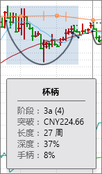 将鼠标悬停在形态标识区可调出形态报告,单击即可锁定显示,然后继续浏览图表其他内容。