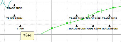 公司事件标志显示于图表下方,发生回购、拆分等事件或EPS变动时,会显示相应标志。