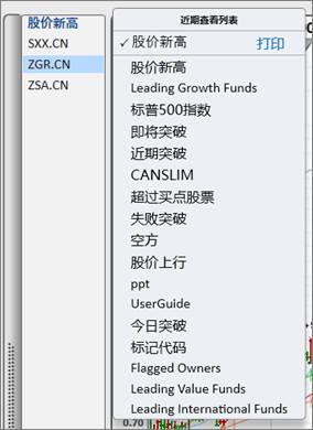点击边窗上方的蓝色列表名可访问近期查看过的列表,点击即可加载到列表边窗。