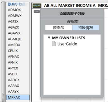 添加共同基金或ETF基金时,敲击插入(Insert)键,可选择添加至欧奈尔或持股情况数据库中的个人列表。