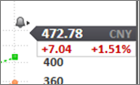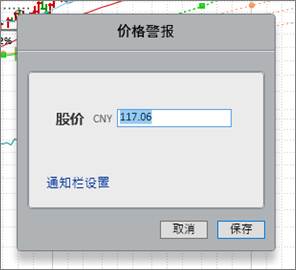触发价格设置好后,股价比例尺对应位置回显示警报图标。将鼠标悬停在警报图标处即可查看触发价格。