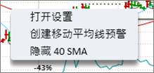 右键点击数据图表中的移动均线,选择“创建移动平均线预警”即可创建警报,在股价与均线交叉时示警。