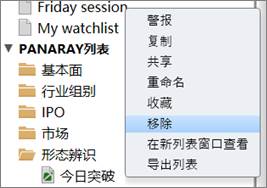 仅“我的列表”下的用户自定义列表支持删除操作。选中对应列表,单击右键并选择“移除”即可删除。