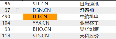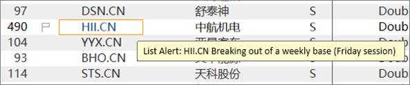 列表中有个股触发警报时,警报图标将变为橘色,同时触发警报的个股背景也将显示为橘色。